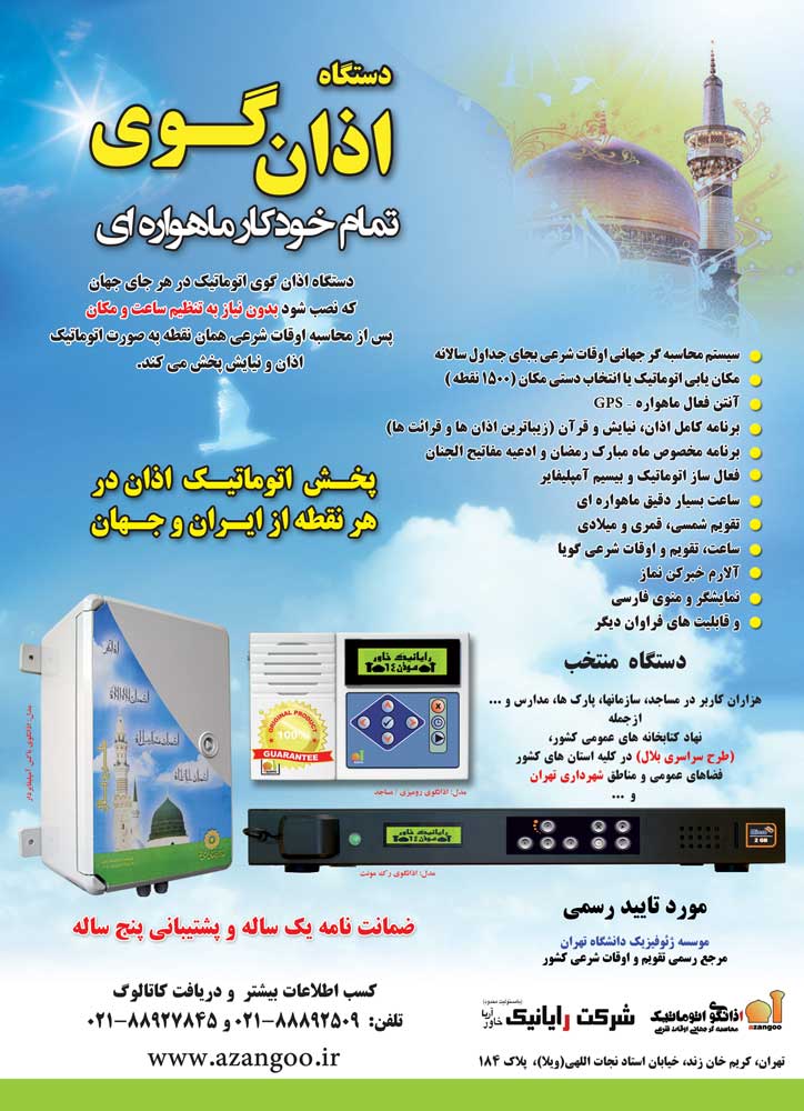 لطفا حتما شرح قابلیت های کامل دستگاه اذانگو را بخوانید- لطفا اینجا را کلیک کنید.