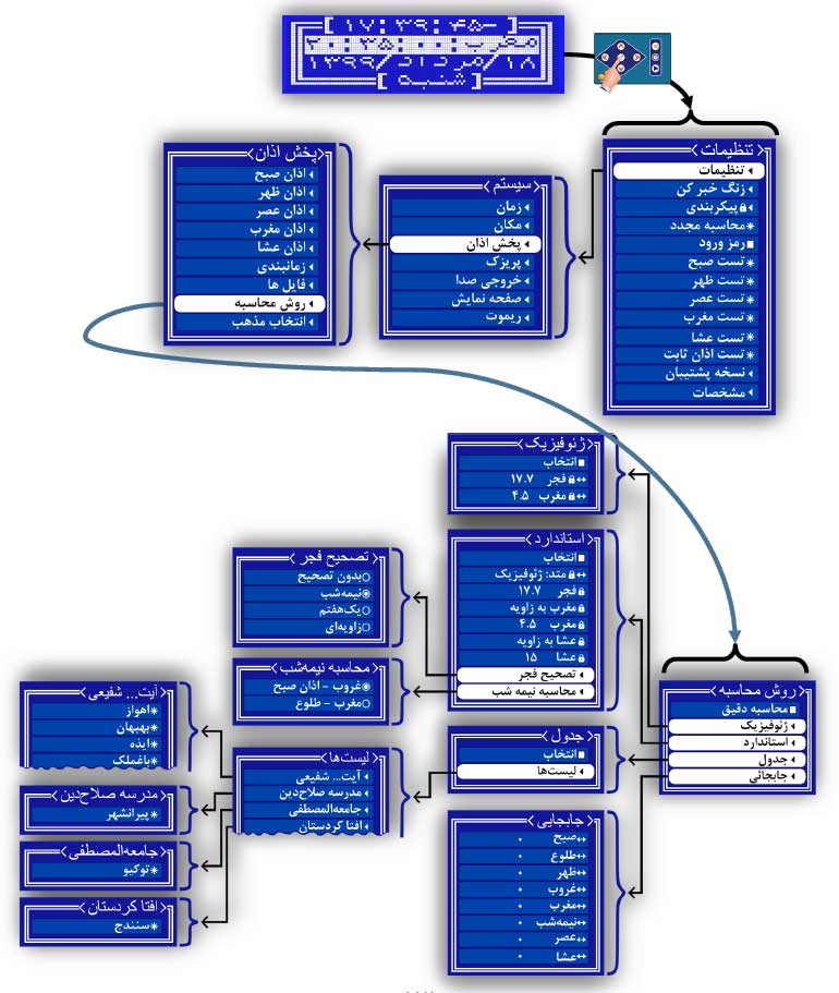 3- با کلیدبه گزینه پخش اذان برسید.